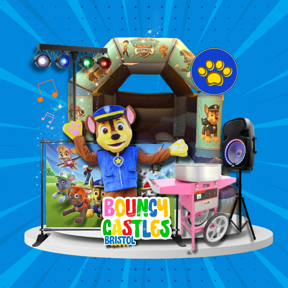 Looking to throw the ultimate PAW Patrol party in Bristol or Fishponds? We offer a fantastic range of PAW Patrol bouncy castle hire and PAW Patrol themed party hire options, including a PAW Patrol Chase mascot visit that will bring the excitement of your child's favourite pups to life! Whether you're hosting a PAW Patrol birthday party or a PAW Patrol themed event, we have everything you need, from PAW Patrol character visits featuring Chase and friends, to PAW Patrol party packages that include bouncy castles and soft play hire. Our PAW Patrol inflatable hire is perfect for adding extra fun to your celebration, and we also offer PAW Patrol party entertainment to keep the kids engaged. If you're looking for PAW Patrol party ideas or PAW Patrol-themed bouncy castles, we’ve got you covered! Host a PAW Patrol pup-themed party with our exciting inflatables and PAW Patrol mascot visits, available in Bristol, Bath, Taunton, Newport, and Cardiff. Let us help make your child’s PAW Patrol birthday party or any special occasion one to remember with our PAW Patrol-themed event services!